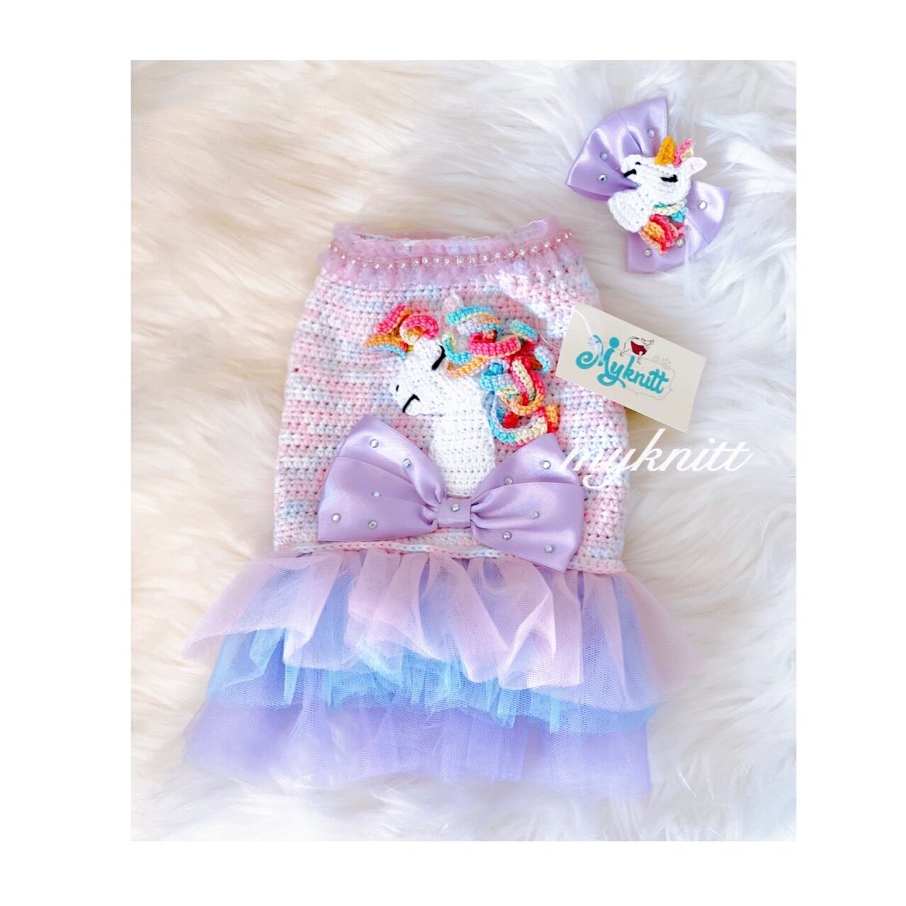 (今週末のみセール、即納 or予約可能商品)myknittユニコーンレインボーワンピース❤︎バレッタセット