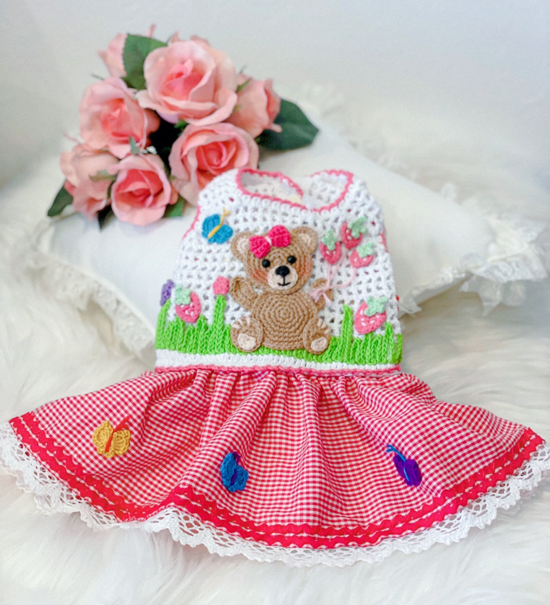(今週末のみセール、即納or予約可能商品)myknittくまさんワッペン&ストロベリーワンピース